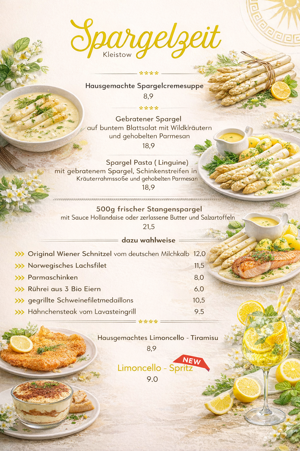 Wöchentlich wechselnde Mittagskarte mit saisonalen Speisen